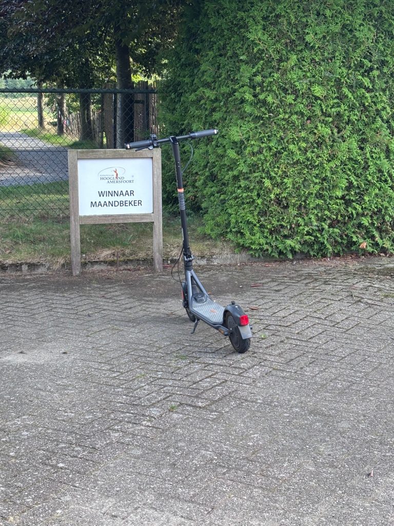 Na in juli nét naast de hoofdprijs te grijpen met een mooie tweede plaats, was het deze maand eindelijk raak: de eerste plek bij de Maandbeker Augustus! En alsof dat nog niet genoeg eer is, mag ik mijn e-step de komende maand ook nog eens trots stallen op de parkeerplaats ‘winnaar maandbeker’. Heel leûk.