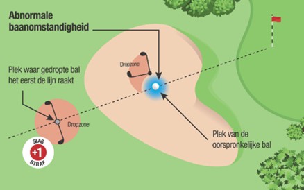 Dit zijn de enige twee mogelijkheden die je hebt om een abnormale baanomstandigheid in een bunker te ontwijken. Dus niet terug naar de plaats waar je je laatste slag hebt gedaan of in de bunker ver achteruit. Zou je dat doen, dan speel je de bal van de verkeerde plaats en dat kost je twee strafslagen.